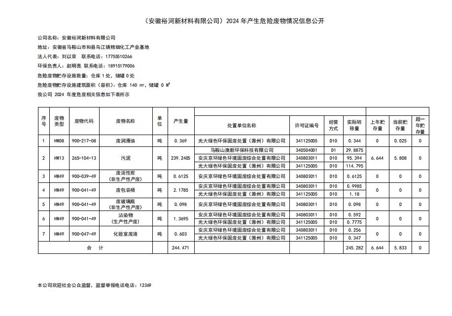 2024年產(chǎn)生危險(xiǎn)廢物情況信息公開